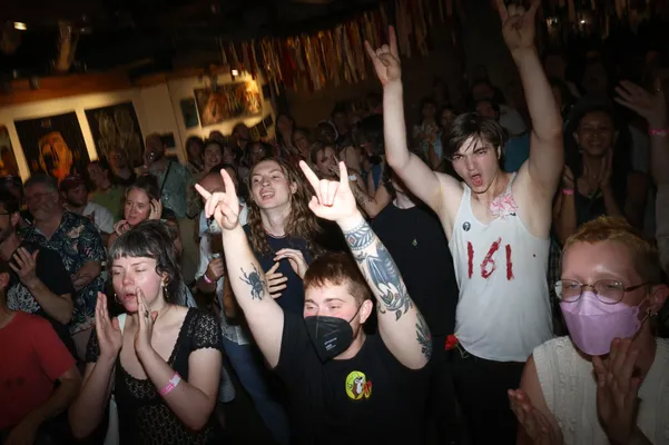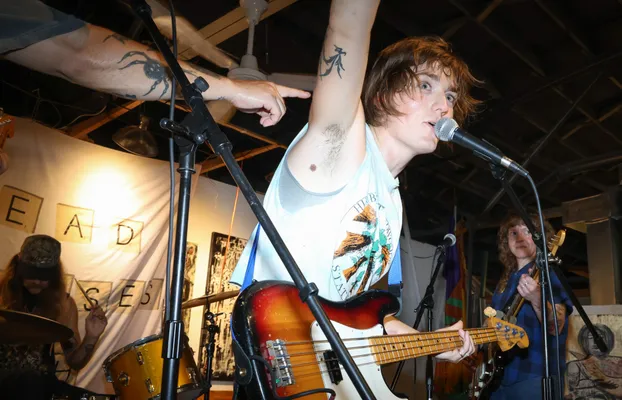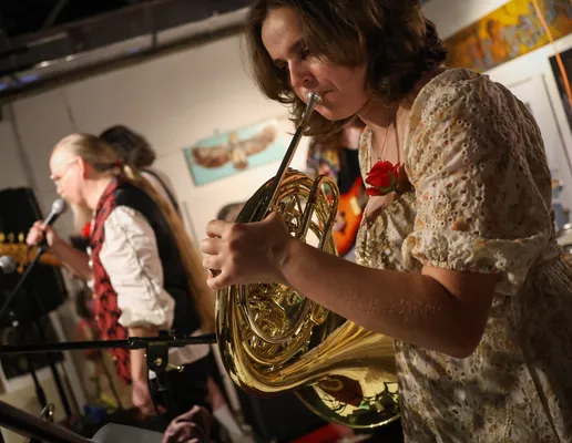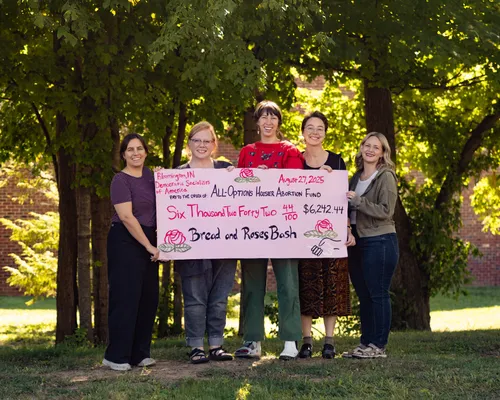 Bloomington DSA's Bread and Roses Bash is an annual all-ages fundraiser concert and party in support of a local non-profit doing important work in Bloomington or Indiana. In 2025, the Bash raised over $6k for the Hoosier Abortion Fund with live music from Negative Glow, The Sera-Tones, Magical Space Wizards for Outer Space, and more!